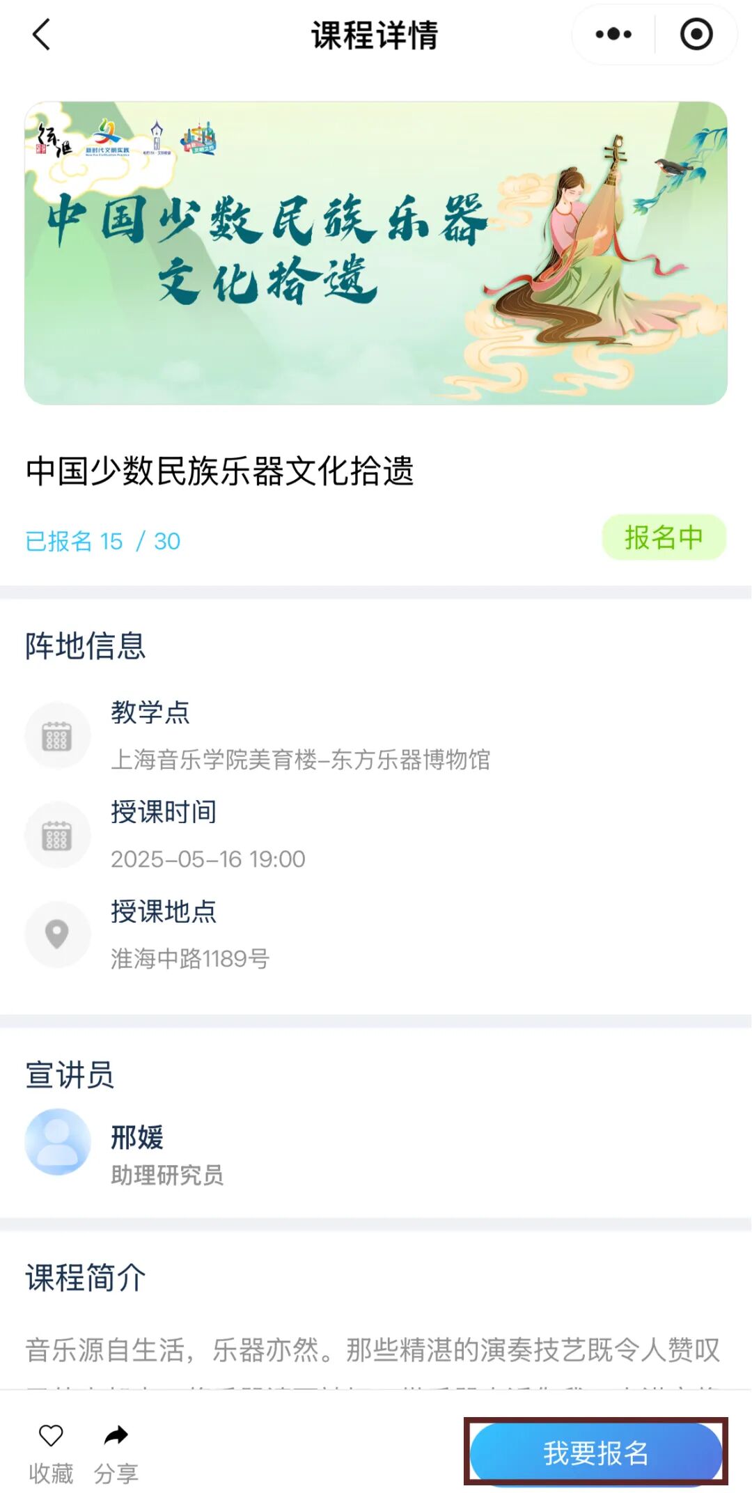 注意:报名后可在“我的消息”页面查看审核通过的消息,课程开始前一天还将通过微信发送提示信息。