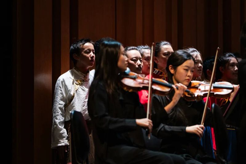 11月27日晚,果洛西宁民族中学的果韵同声合唱团身着民族服饰,登上上海音乐学院建校98周年音乐会舞台,与上海音乐学院合唱团一起,参与由光未然作词、冼星海作曲的大型合唱声乐套曲《黄河大合唱》的演唱,共庆上音建校98周年,赢得现场阵阵掌声。