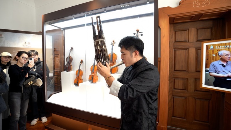 活动开场便氛围感拉满 —— 上海音乐学院的同学率先登场,现场演奏了苗族传统乐器芦笙。独特音色与灵动旋律在现场流转,瞬间将老师们带入浓郁的民族音乐氛围中。随后在上海音乐学院研究员、东方乐器博物馆馆长肖阳老师的带领下,参训教师们开启了一场穿越千年的中国古乐之旅,从8000年前的骨笛到曾侯乙编磬;从琴瑟和鸣到琵琶与丝路;从敦煌乐谱到中西乐器的历史演进,上音深厚的学术积淀成了赋能徐汇社会大美育的沃土。