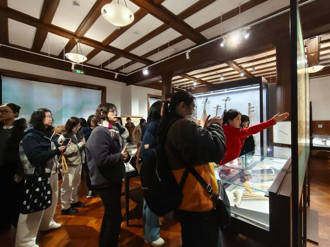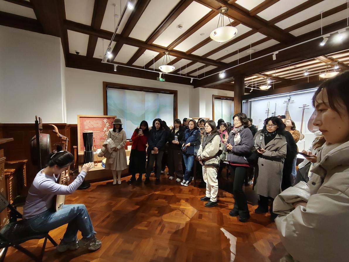 2026年3月18日,青年报社工会女职工一行三十余人赴东方乐器博物馆参观交流。我馆学生志愿者周洲讲解。