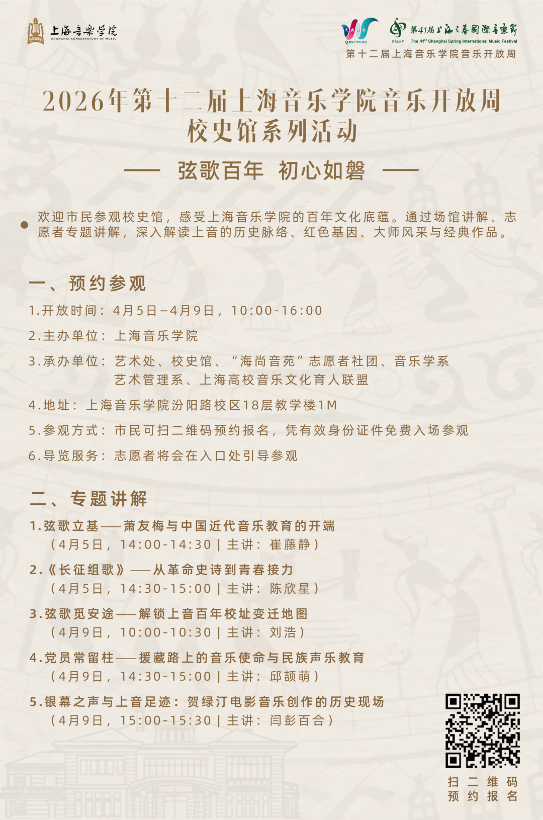 上音开放周期间,校史馆也将推出“弦歌百年 初心如磐”系列活动,欢迎大家前来预约打卡!