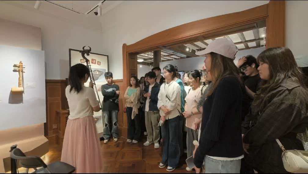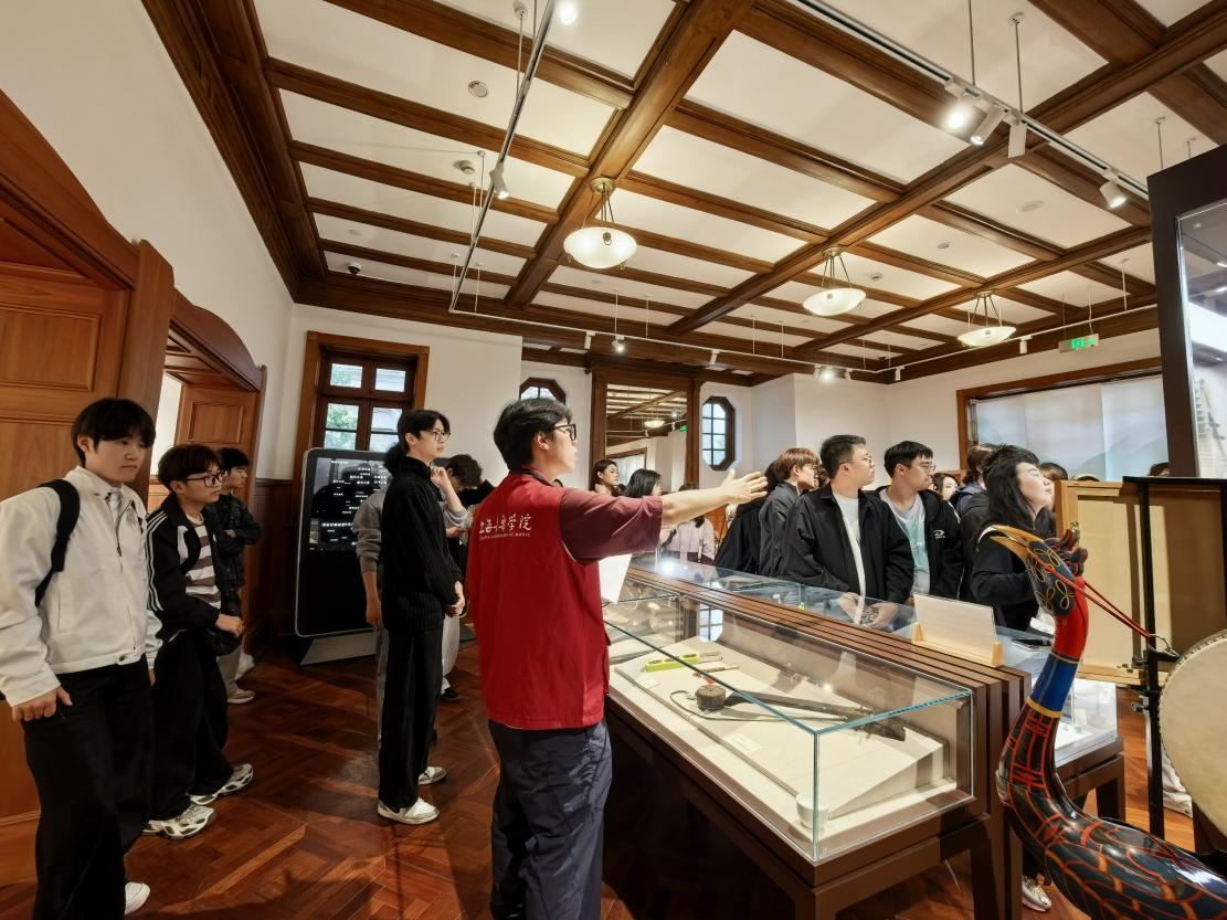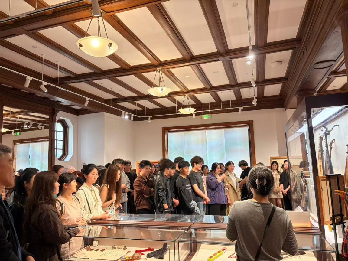 2026年4月9日下午,黄山学院艺术学院2023级音乐学专业本科生及老师们共同走进上海音乐学院东方乐器博物馆,围绕2026年东方乐器博物馆年展“华夏器韵:中华民族多元一体的乐章”开展考察研学。我馆助理研究员褚婉吟老师、学生志愿者黄婧涵(二胡)、韩宝怡(琵琶)、孙安迪(音乐学)共同接待来访师生。