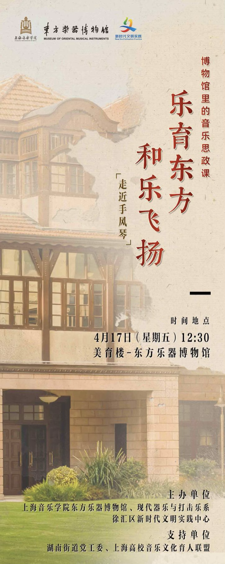 2026年4月17日(星期五)12:30,相约上海音乐学院东方乐器博物馆(淮海中路1209号美育楼),在手风琴的温润乐声里,聆听时代旋律,感悟美育力量,共赴一场音乐与思政的美好相遇。